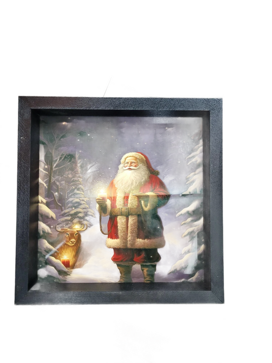 Lighted Santa and Deer Christmas Shadow Box Wall Art