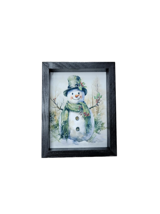 Framed Watercolor Snowman Wall Art – 8x10 Winter Holiday Decor