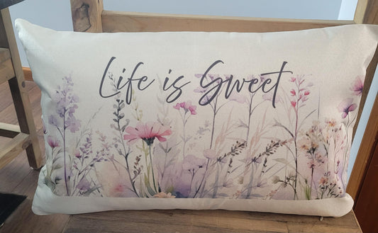 Life Is Sweet Floral Lumbar Pillow – Farmhouse Inspirational Throw Pillow Decor