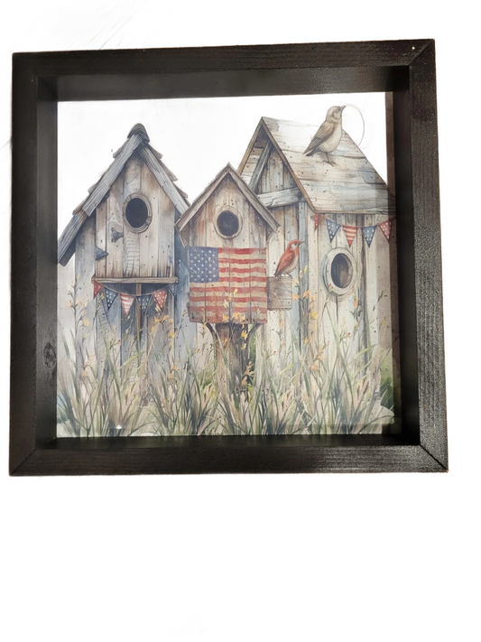 Rustic Patriotic Birdhouse Wall Art – Americana Farmhouse Decor