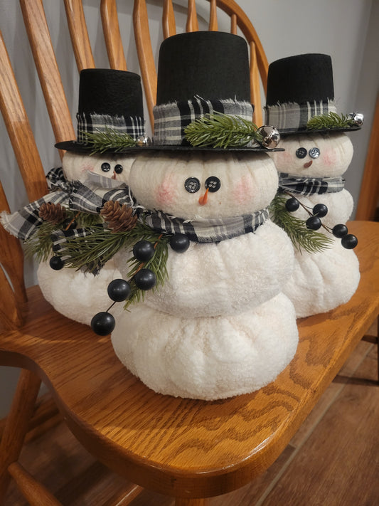 Plush Snowman Christmas Decor with Black Top Hat – Farmhouse Holiday Tabletop Decoration