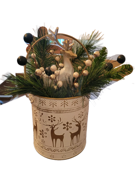 White and Gold Deer Christmas Decor – Holiday Centerpiece with Pine and Berries