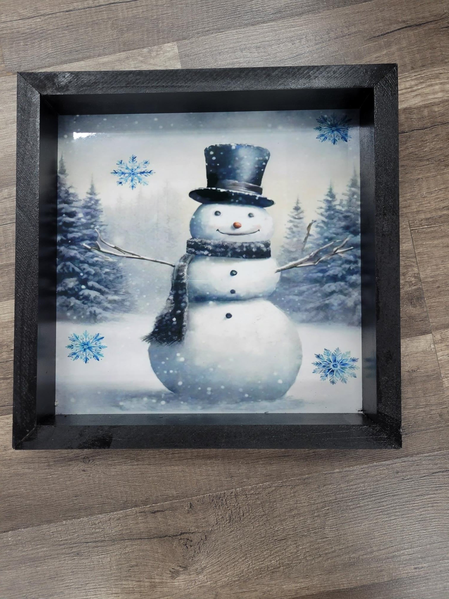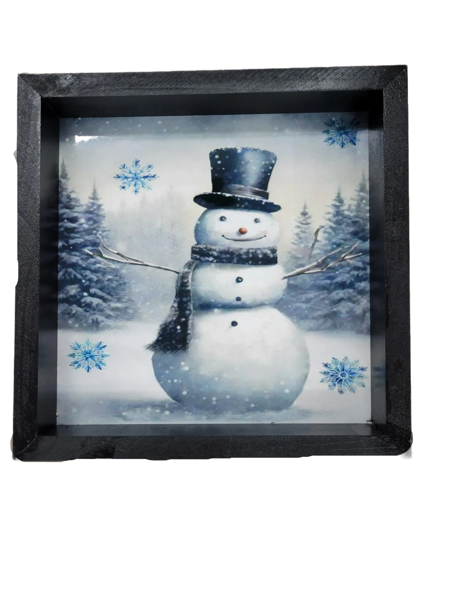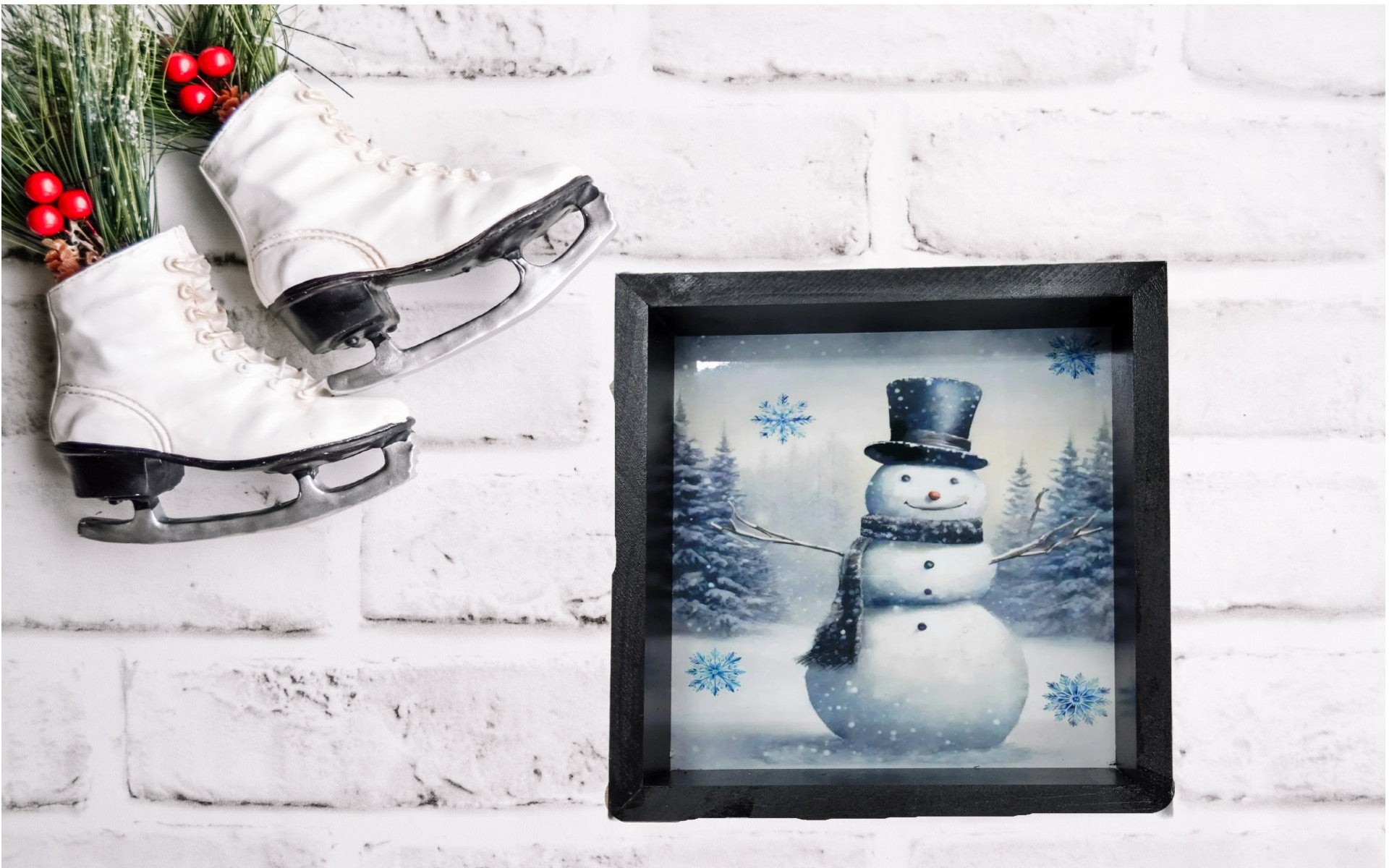 Charming 12x12 Blue Snowman Winter Shadow Box Wall Art