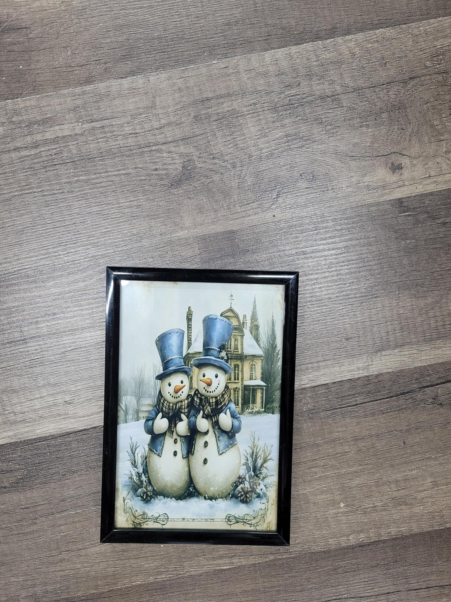 Charming 4x6 Snowman Couple Wall Art – Blue Winter Holiday Decor