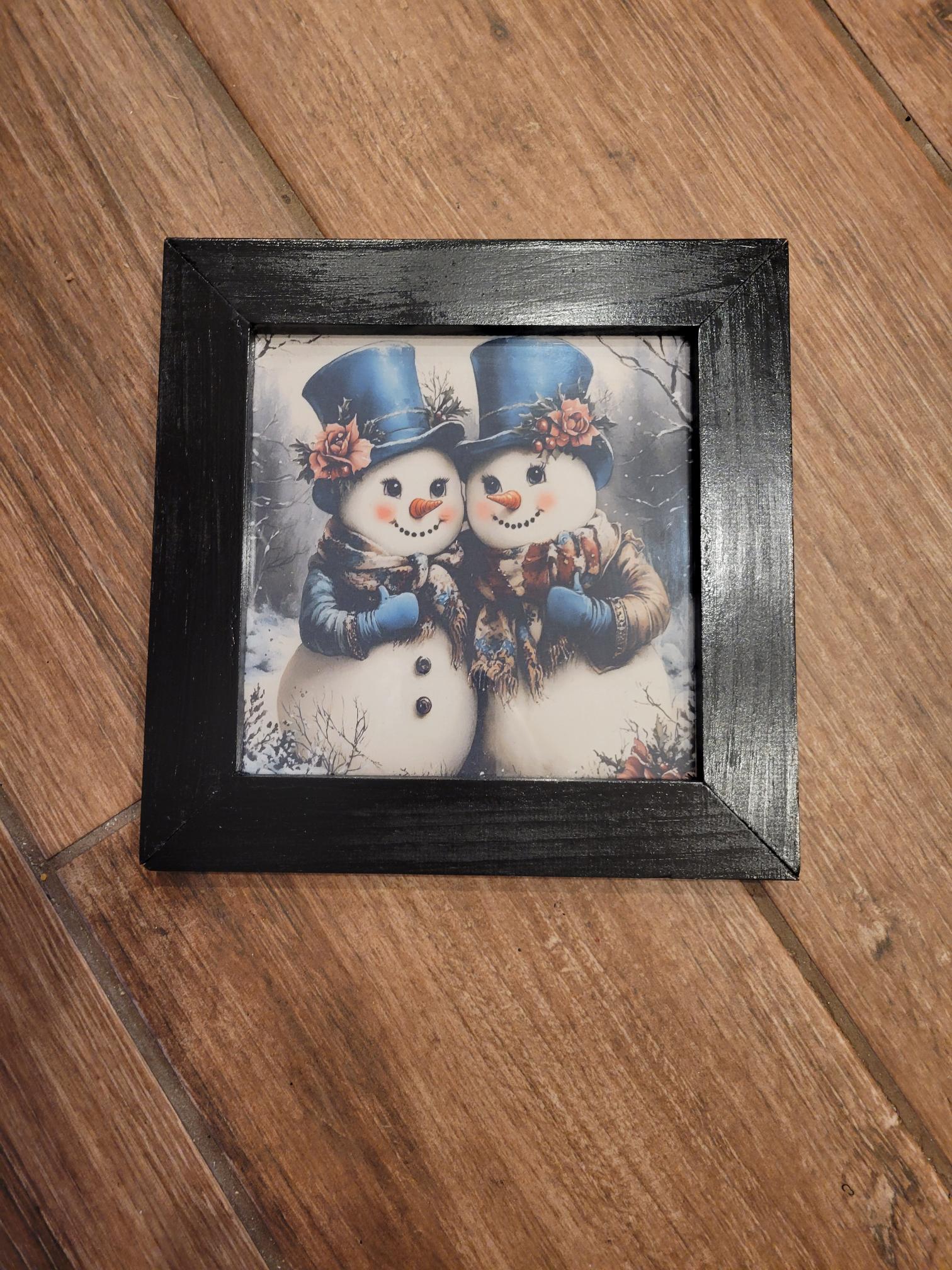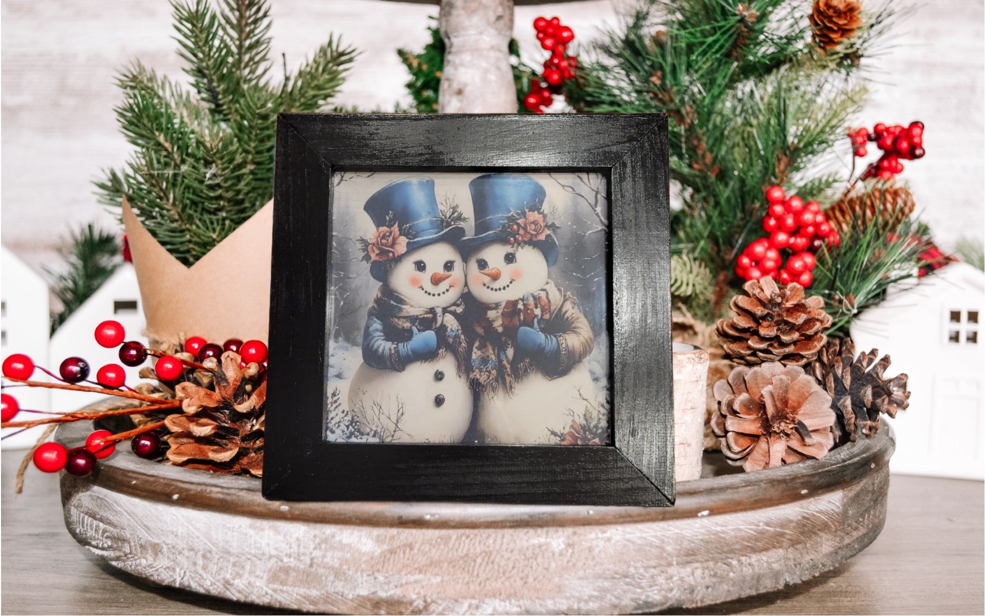 Charming Snowman Couple Framed Art - Winter Holiday Decor