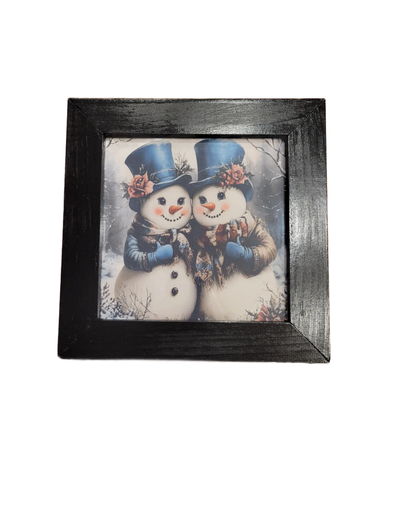 Add a festive touch to your home with this adorable framed picture of a snowman couple in top hats. Perfect for winter and holiday decorating, this heartwarming art piece brings cozy charm to any room.