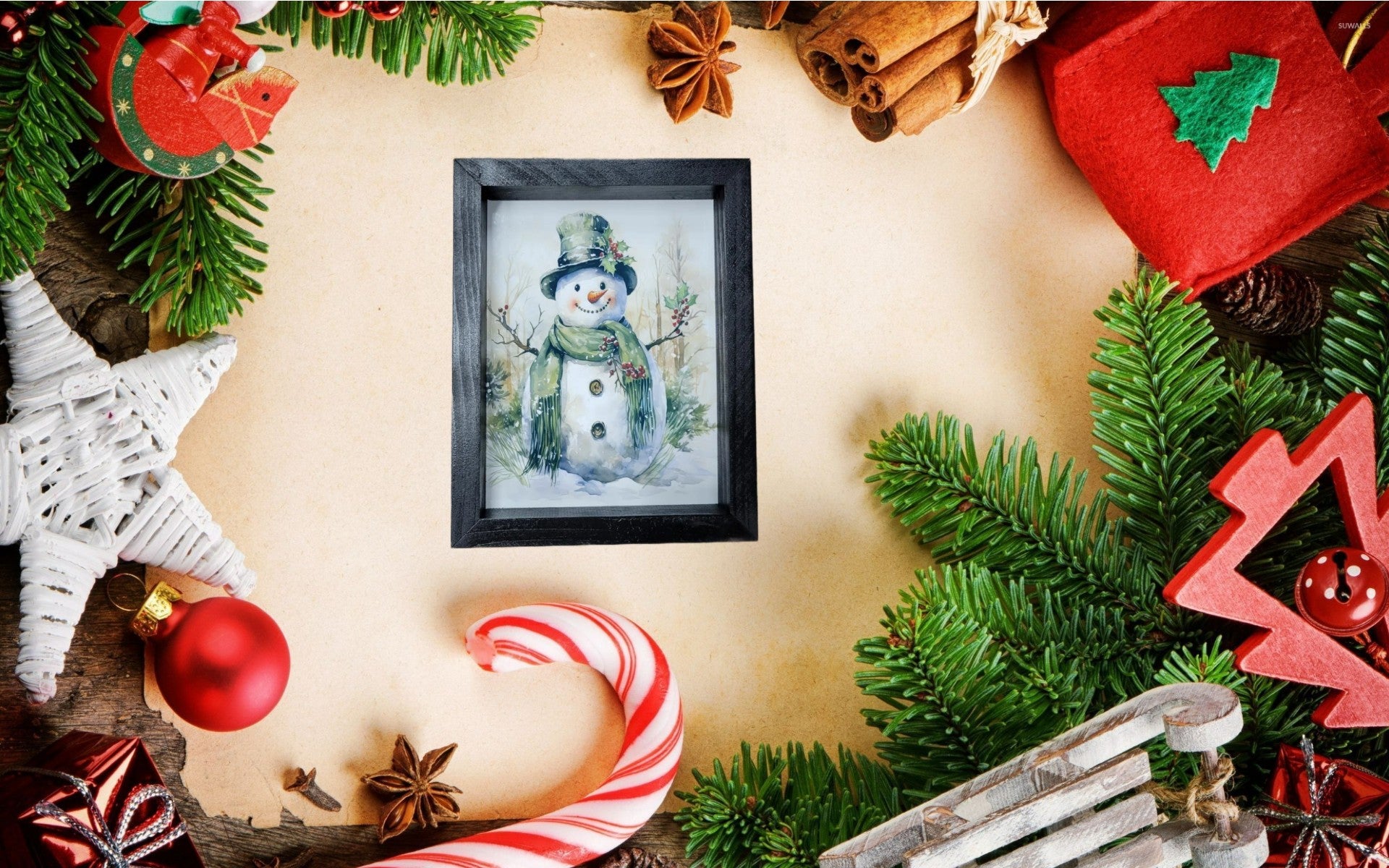 Framed Watercolor Snowman Wall Art – 8x10 Winter Holiday Decor