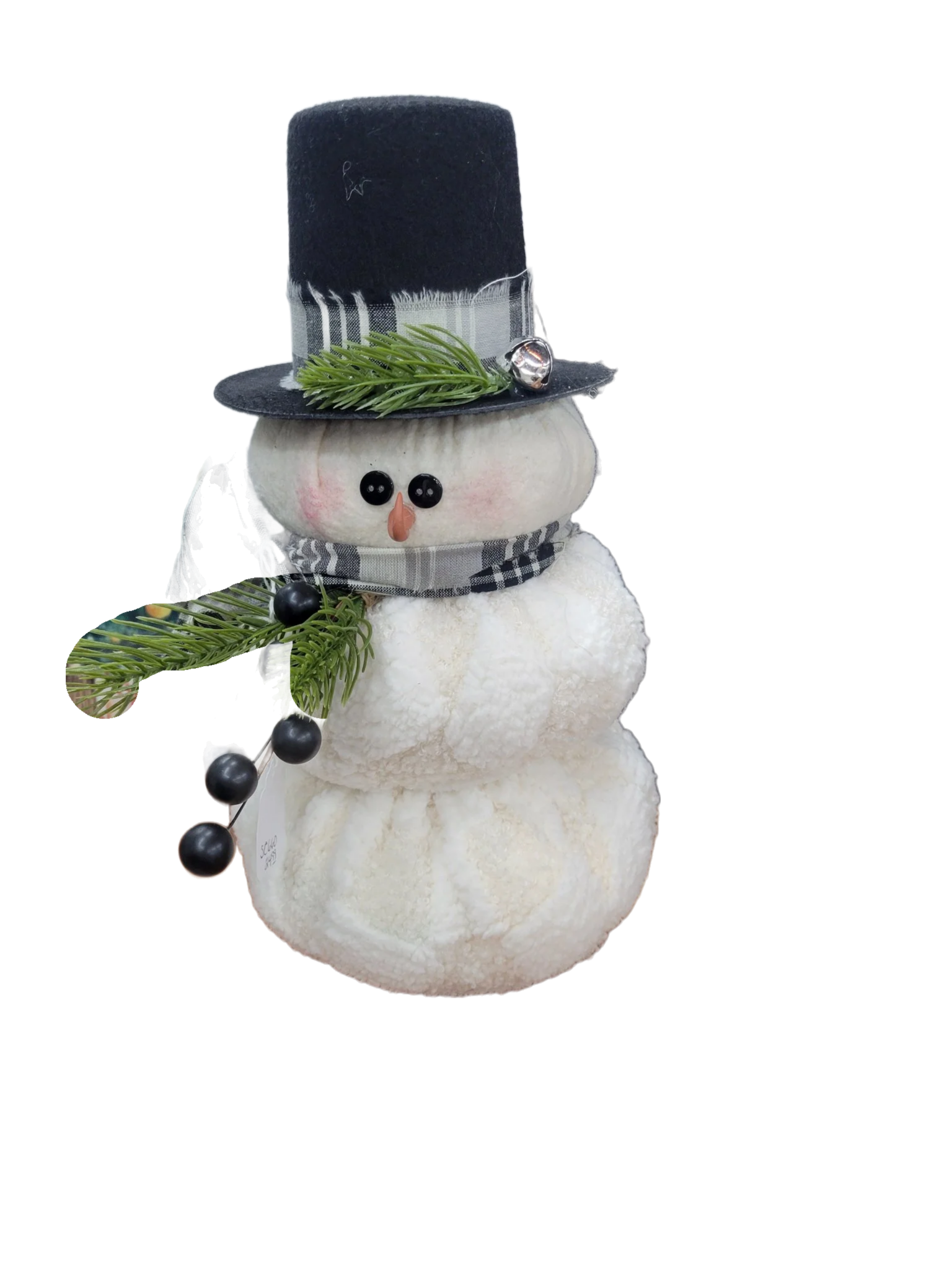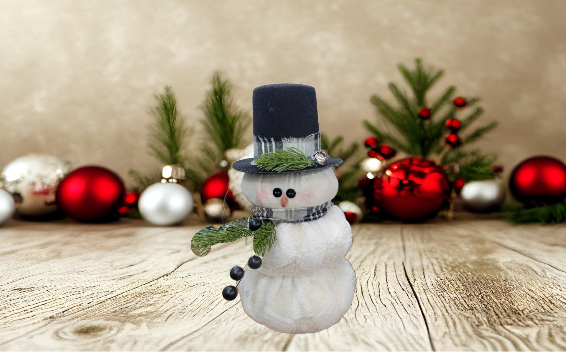 Plush Snowman Christmas Decor with Black Top Hat – Farmhouse Holiday Tabletop Decoration